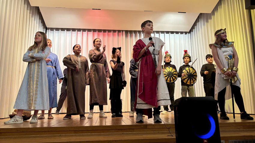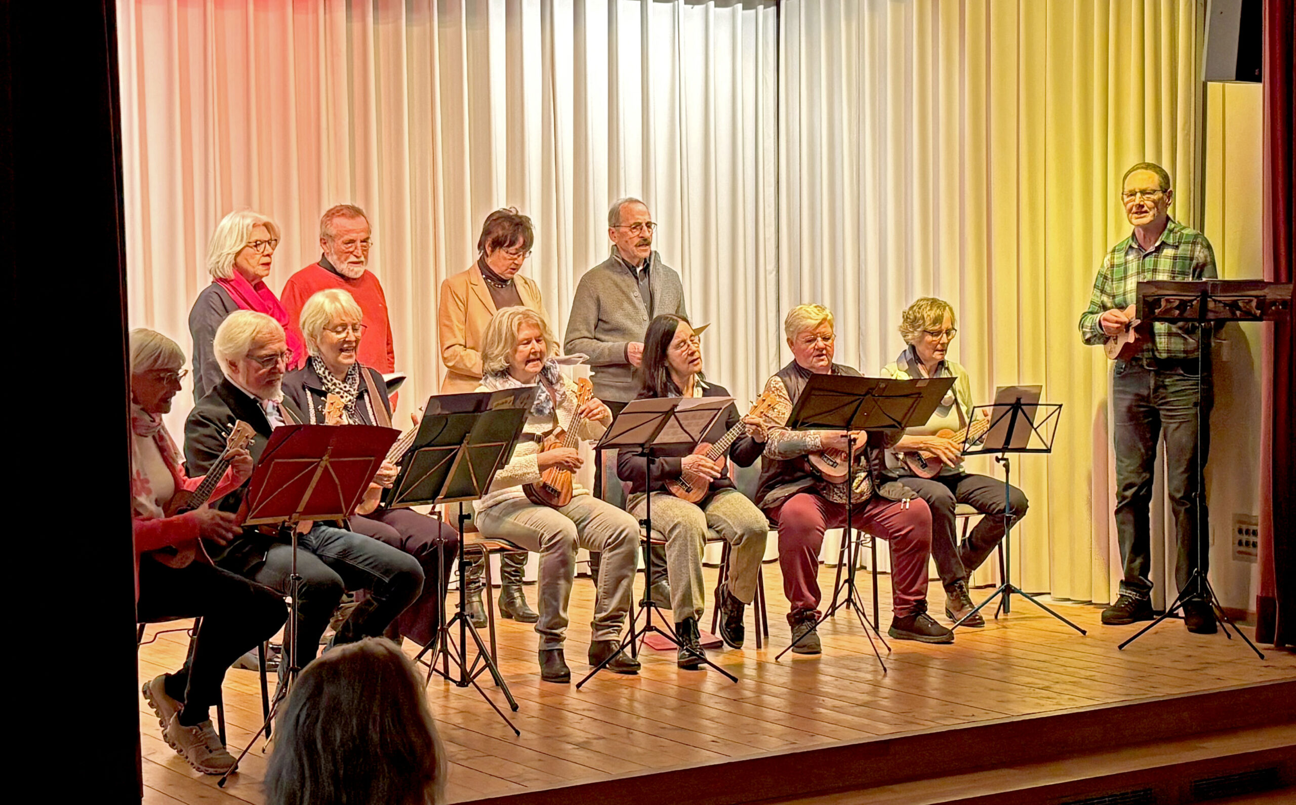 Der Ukulele- und Sing-Kurs zeigte, was die Teilnehmer und Teilnehmerinnen in nur wenigen Monaten gelernt hatten und die sing-and-act-Klasse vom Schillergymnasium präsentierte eine Szene aus ihrem neuen Musical „Die Zeitdetektive – Kleopatra und der Biss der Kobra“.