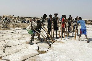 | Salzsee Afdera | Salzgewinnung | Pause im Schatten |