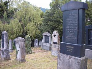 | Das Innere der Synagoge von Oberdorf | Judenfriedhof von Oberdorf | Judenfriedhof mit Blick zum Ipf |